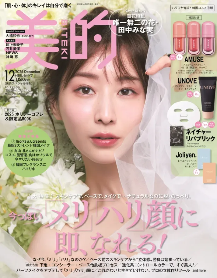田中みな実さんが表紙を飾る「美的」12月号は10月22日発売です。
