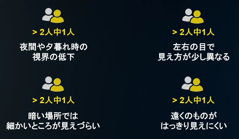 夜の運転で、標識が少しにじむ。夕暮れ時、遠くの看板がぼやける。「見えているから大丈夫」と思っていても、実はどこかで小さな違和感を抱えている人は少なくありません。
