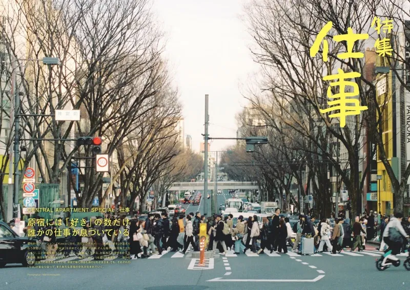 特集には通称「ゆとりくん」片石貴展さんや、おもちゃやSPIRAL店主高橋香代子さん、PEEK-A-BOO原宿ハラカド大川侑世さん、WEGO1.3.5...原宿店店長リカコさんなどが登場。原宿で活躍する仕事人たちのインタビューが掲載となっています。