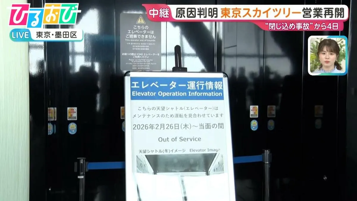 エレベーター“閉じ込め事故”から4日。東京スカイツリーの営業が再開されました。