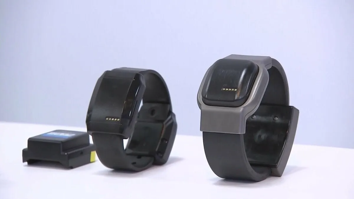 「こちらが韓国で導入されている電子足輪になります。こちらを装着しますと、デモ画面になるのですが、このように位置情報を24時間追跡することができます」