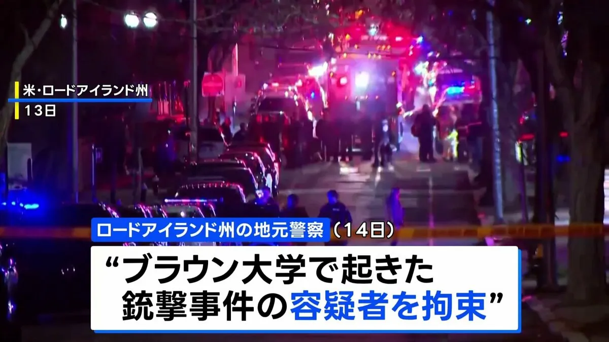 ロードアイランド州の地元警察は14日、ブラウン大学で起きた銃撃事件の容疑者を拘束したと発表しました。容疑者の年齢は20代ということですが、大学との関係については明らかにされていません。