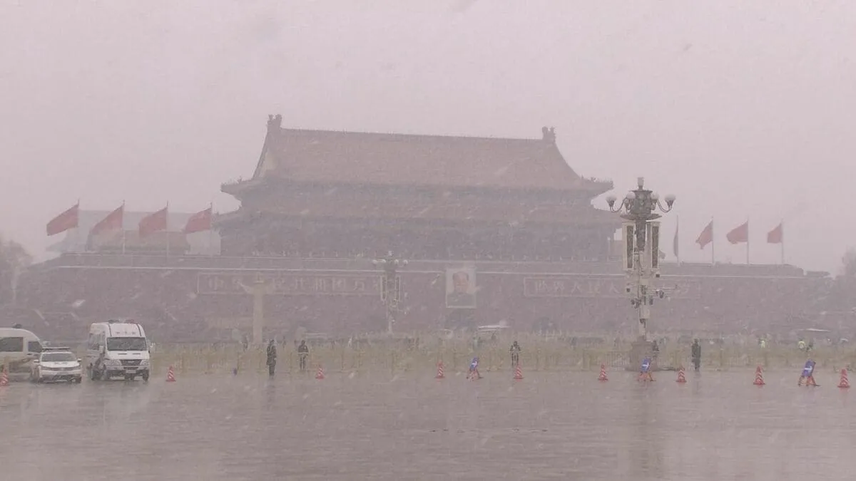 会場となる人民大会堂周辺には多くの警察官が配備されるなど、厳重な警備態勢が敷かれています。